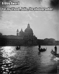 Once again Julie, thank you for my award and for being a dear friend. XXXX